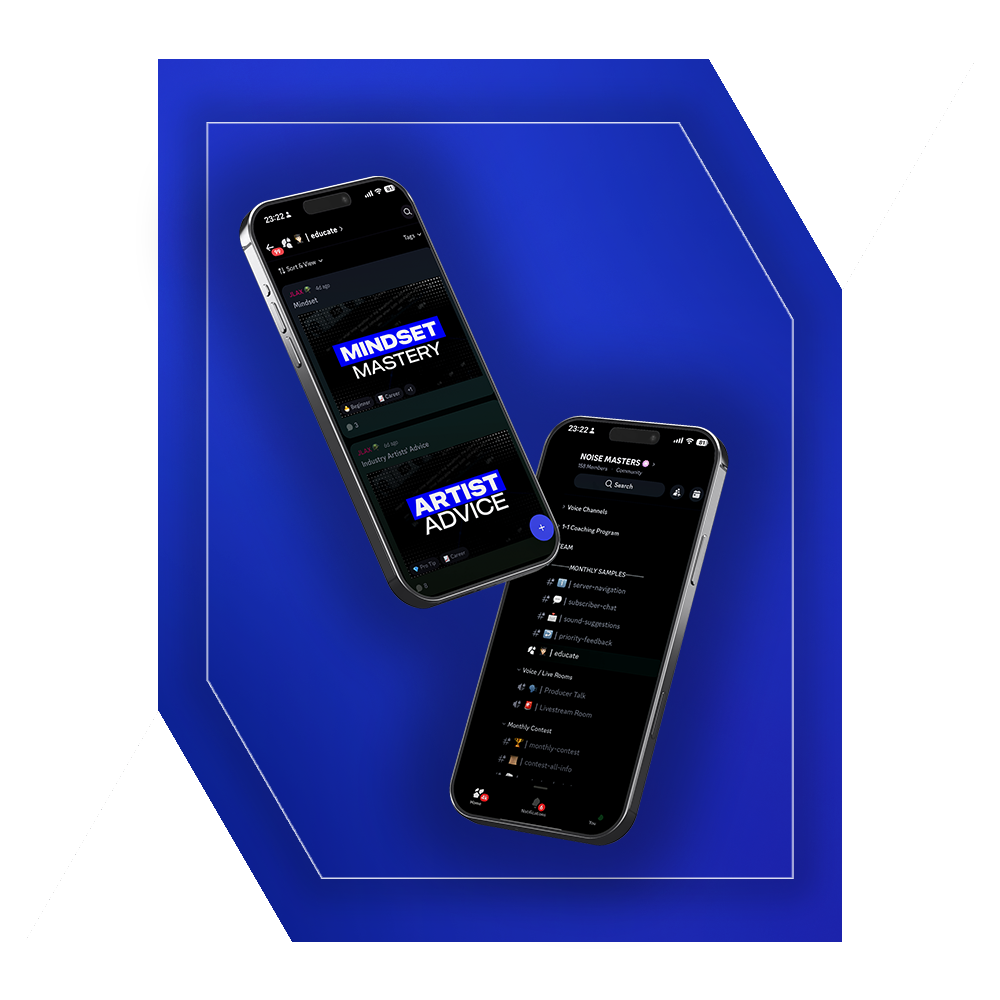 You also get access to private Discord rooms where you can connect with like-minded producers, a Producer Playbook with 10 written modules, and direct access to the Noise Masters team for guidance and feedback.