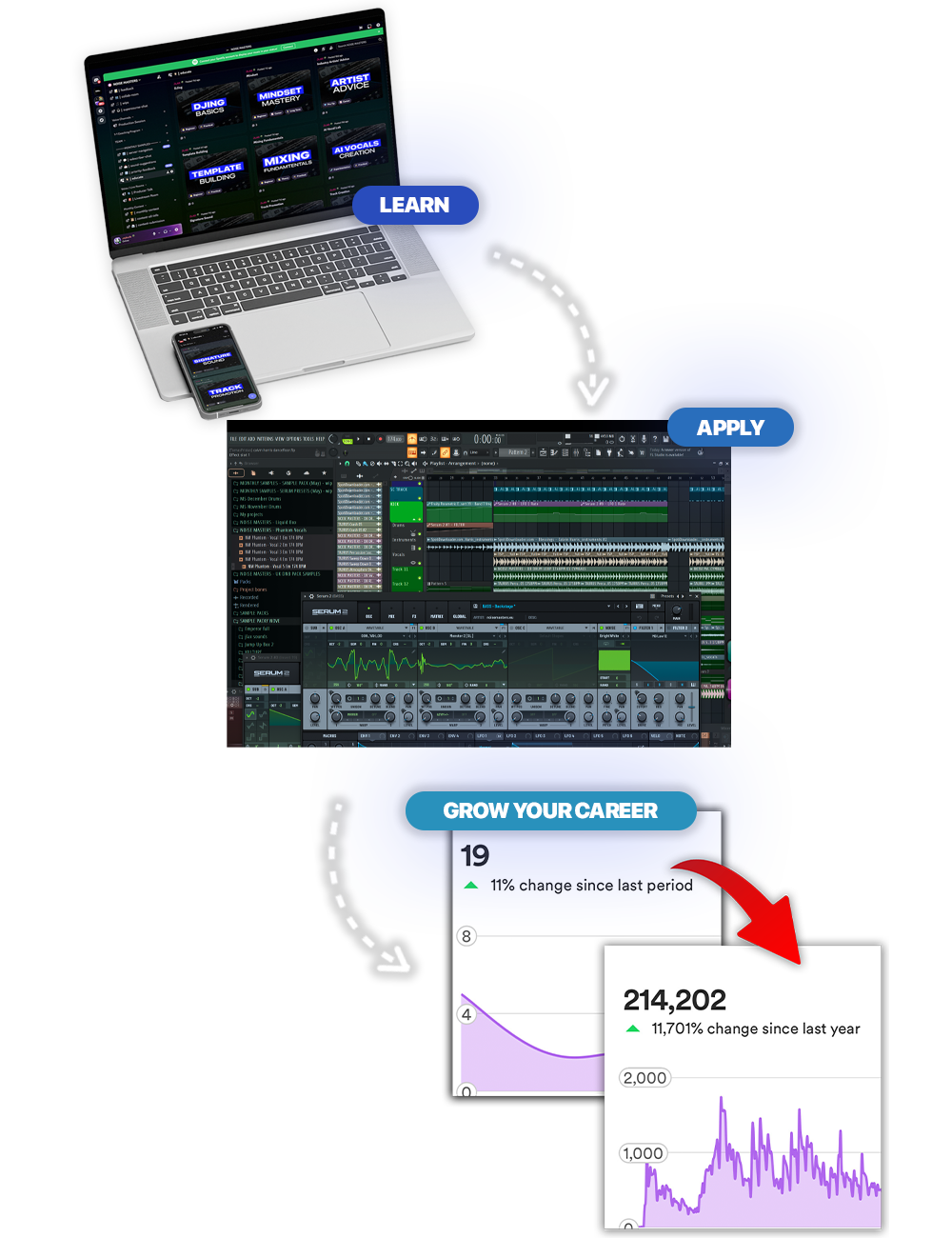 Inside the membership, you’re part of a private producer community where everyone is working toward the same goal: getting better and moving forward.